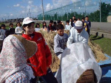 1999年10月18日(月) この間、富陽小学校、生徒達が手刈りした、カグラモチを、脱穀した、去年は、コンバインで手こぎして脱穀したが、今年は、なんと木製の足踏み式脱穀機で脱穀した、こりゃ、大変だ!、まあ、教育という意味で良いことであろう、だが、自分は、それを見ていると、足踏み式脱穀機にエンジンを付けることを、つい想像してしまう、 ![]() ケイカル散布、小学校、脱穀、大豆コンバイン整備(バッテリ交換) |