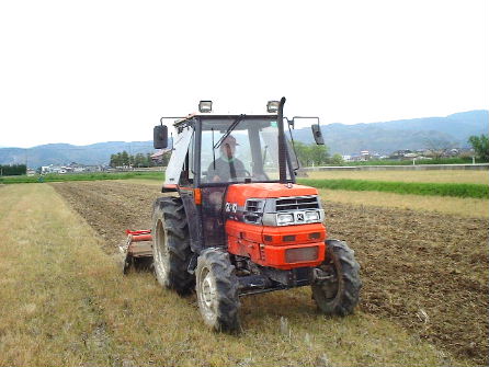 2001年5月29日(火) 今日から、大豆田の耕起、だが、トラクターのエアコンが調子悪く、暑くて大変!なんで肝心な時に壊れるんじゃー、もう、いやーになる! 大豆田の耕起開始 |