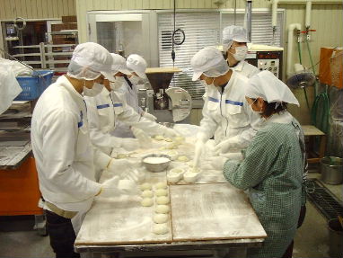 2001年12月6日(木) こんどは、昨日、作ったまる餅を10個づつ袋詰作業、単調な作業が続く、特に昼飯食ってからの作業は、もう、眠くて仕方がない、思考力が低下していても、身体が覚えていて勝手に動く、みんな手はちゃ〜んと動いているが、でも、あまりにも単調な作業がづつくと、ちょっとしたことの間違いに気づかず、トラブルを起こすことがある、そんな時、オレは、「オイ、なんか喋れっ!」と言う、基本的に作業中、おしゃべりは、良くないのだが、こんな時は、少しぐらいのおしゃべりのほうがいいことがある、もっとも、オレが一番眠たかったのだが!! |