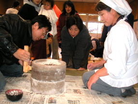 2002年11月12日(火) 今日は、新パンフレットの撮影日、プロのカメラマン、担当デザイナーが来て、餅、加工風景、家族との食事など撮影しました、イメージ通りにいい画像が取れればいいのだが! 大豆検査、大豆農協出荷、餅加工、パンフレット撮影 |