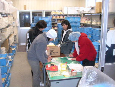 2002年12月27日(金)![]() 今日から本格的に店舗予約、配達予約商品箱詰め作業が始まりました、何百件もの箱詰め作業、段取り良く作業を進めなければ今日中に終わらない! 作業手順として、一人が注文表を読み、もう一人が伝票と合っているか確認、そして、後の二人が商品をトレイに入れて、再度、注文表と伝票を照らし合わせながら、ここで初めて箱詰めします、 事務方で注文表を見て顧客管理ソフトに入力し1件ごとに納品表(伝票)をプリントアウトするのだが、ここで間違えると合計金額が違うので確認します、また箱詰めの時でも間違えないように商品を一度トレイに入れて確認しながら箱詰めとなります、二度手間になるのだが、ミスを防ぐため仕方がありません、 最終的に自分がその箱を所定の棚にエリアごとに並べていきます、 ここで大事なのは、チームワーク、それぞれのポジションを固定して迅速に作業を進める、だから、人が変わるとリズムが狂い時間がかかります、 |