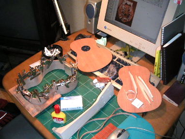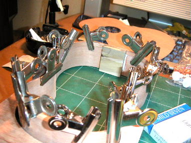 2003年2月23日(日)![]() いろいろとウクレレ製作のHPを見ていると、いい音を出すには、ちょっとした工夫があるみたいで、底板に少しばかり湾曲を入れると音に深みが出るようです、また、板を薄くするのもいいみたい、 今回は試作っうことで、そのままフラットにしました、まぁ、本当はじゃまくさいのもあるのですが、とにかく一度完成させて鳴らしてみることです、そんなもんにいちいちこだわっていたら完成しましぇ〜ん 次回2台目はいろいろと工夫するつもり、えっ!まだ作る気〜 |