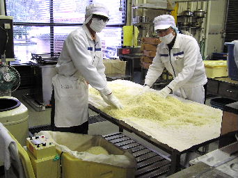 2005年2月15日(火) 納豆好きです、やっぱ日本人なら納豆でしょ! でもこの時期、納豆は食べられないのです、 何故かと言うと、今は麹作り、味噌作りの真っ最中、殺菌が入り込むのが怖い、 特に納豆菌は繁殖力がとても強く、少しでも麹とか味噌の中に入り込むと一発でダメになります、 以前、納豆菌の怖さの認識がまったくなく、味噌作り中の加工場でなんと手作り納豆を作ったことがあります、するとオケのお味噌が真っ黒になったことがありました、 その時は、原因がはっきり分からなかった、だが、後から考えてみると確かその時に納豆を作った覚えがある、たぶんそれが原因であろうと判断しました、 そんなこともあり、今は食べないようにしてます、 ただ、スタッフには納豆を食うなって強く言えないので自己判断に任せてありますが・・・・ |