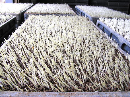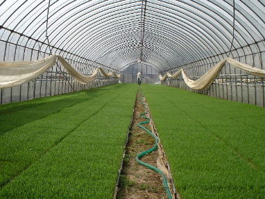 2005年4月23日(土) 今日は4回目の苗出しの日、後半用コシヒカリ2500箱をハウスに並べました、 苗を田んぼに植える時、植える適期があって、植え遅れを無くす為、前半用と後半用に分けて苗を育てます、 |