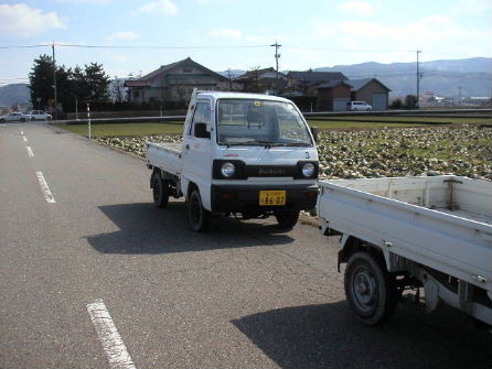 2006年3月5日(日) 「さよなら3号車!」 今月車検をむかえた軽トラ3号車であるが年式もかなり古く廃車することになりました、そこ比較的年式の新しい中古の軽トラを購入しそれと入れ換えとなります、 まだまだバリバリに走る3号車、排気ガス規制前の高出力高回転型エンジンもよく回って気にいっていました、だが、会社の方針として、安全、経済性を考えて今回廃車にすることになりました、仕方がありません、 でも、オレはまだ未練が残ってます、このままプレスされクズ鉄の塊なんて、とてももったいない、まだまだ走るし、なんとか残してやりたい気持ちがありますが、 まぁ、とにかくこれまで頑張って稼いでくれた愛機3号車、ありがとー! ![]() |