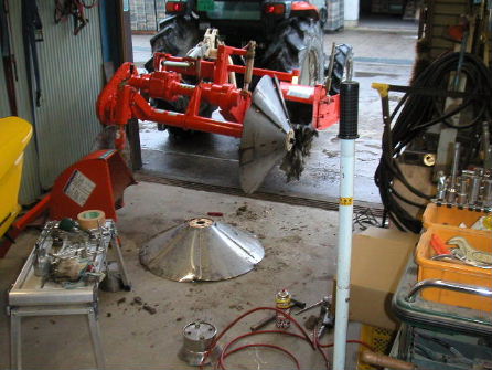2006年3月10日(金) 「デスク交換」 畦ぬり機のデスク、かなり消耗してきたので交換しました、 最近の畦ぬり機はリバースタイプで左右切りかえが付いていてとても便利、うちもリバースタイプに換えたいのだが、今の畦ぬり機でも十分に使えるし、そもそも次から次えと新しい物に買い換えるのも経営的に問題、今あるものを生かすことです、 ただ、どう見ても作業的にリバースタイプの方が能率がいい、隣の芝生が青く見えるだけ、ガマンガマン!! ![]() |