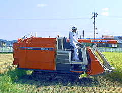 1997年9月10日 「コンバインでGO!」 今日はコンバインを運転した。今回で3回目ぐらいだが、やはりトラクターや田植え機と 比べて、コンバインは難しいように思う。大きく、重くて車高が高いし、、操作する部分が たくさんあるし、なにより、刈りたいラインになかなか乗せられない。稲を踏みつけたり、 刈り残しもある。 それでも、いままでは「ぎー」とか「う〜」とかうめきながら、 石のように固まって運転していたのと比べると、少しスムーズに、ちょっと気楽に 運転できるようになってきた。バックのスピードも早くなったかな? 運転していて感じたのだが、多分自分の運転は、浩陽さんとも、洋行さんとも、 ラインどりが違うなあ、と思いつつ、どう違うのか、どう変えればもっといいのかがわからない。 上空カメラでの再現でも見れればいいのだが。 運転を終えて、降りると、手足がつっぱった感じだ。ゲームセンターで練習しよう。(笑)