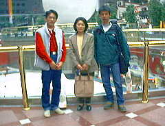 1997年11月12日(水) 別れの雨 「ロッテワールド」 台湾の人が今日で帰ってしまう、ということで、昨夜は午前3時ごろまでホテルの一室にみんなで 集まり騒いでいた。最後に「蛍の光」をハミングしながらマッチ棒で炎をリレーしていく時はちょっと 感傷的になった。英語、中国語、韓国語、日本語入り乱れてのおしゃべりだったが、もう2度と、 この集まりがないと思うとさびしい。そして、午前6時に見送り。早い便だが、フローレンスが 帰るとあらば、起きないわけにはいかない。台湾からは10人も来てるのに、多分彼女以外は 中年の人なので、彼女も自分や岡元君と話す方が楽しかったように見える。旅先の出会いって、 美化されるんだよねえ。もう会えないと思うほど想いはつのる、幻想の恋かなあ・・・ さて、今日は1日中観光。雨なので、現代デパートやナイキショップで買い物したり、ロッテワールド で遊んだりした。自分は気に入ったコーヒーカップと韓国代表のユニホームなどを買った。 ロッテワールドはビルの中にある遊園地。屋内のジェットコースターは初めて見た。そしてなぜか、 結婚式の記念撮影をしているカップルがたくさんいる。ウエディングドレスで遊園地を歩いている 人を何十回も見るのはなんか変だ。右の写真は美人通訳(観光ガイドにしてしまった)のオーさんと。 下に見えるのはスケートリンク。