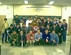 1998年2月25日(水) 雨 「書記に指名される」 この会議には北海道から沖縄まで300人ぐらいの人が参加している。午前中は11の分科会に 別れて討議した。分け方は地域や基幹作物がなるべく重ならないように配慮してある。テーマは 10年後の自分。すぐには想像つかないが、昨日の流れから展開すると、いい問いかけだと思う。 10年後の夢を持ち、今なにができるか考えるのは大切なことだ。それにしても初対面同士の30人 で討論というのは盛り上がりにくい。司会の方も慣れていないようだ。だがみんな諦めて投げやりに なっているわけではなく、大声で意見を言ったり、この場をなんとかしようという姿勢は見受け られた。これも自主性を育む4Hクラブの手法なのか?自分は唐突に書記に任命され、がんばった。 全国大会開催県の出身だからというのが理由だったらしい。もう一人は宮崎で和牛をやってる女性だ。 浩陽さんに勝るとも劣らないほど字の汚い私を指名するとはいい度胸だ。分科会報告のまとめに 一役かうことはできた。午後からはプロジェクト発表など、延々と人の話を聞くだけでたいくつ なのだが、まじめに研究発表している農業青年が全国各地にたくさんいるのは励みになる。 写真は分科会終了後の記念撮影。女の子も2人いた。