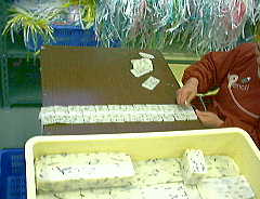 1998年2月20日(金) 雨 「豆板マニア」 今日も、ころころもちの箱詰めをしたり、明日使うもち米を洗ったり、米を運んだり、 みそをすったりと雑多な作業。豆板とは、豆の異常に多い豆もちのこと。 豆の密集している程度や、味、値段が業者によって違っていて、自分は2度ほど買って 食べてみた。一つは豆のたくさん入っている豆もちという程度だったが、もう一つは びっしりとほとんど豆しか見えず、豆をくっつけるためにもちを使っているというような 状態で、見たら愉快になるもちだ。うちでも昨日、余ったもちで豆板を作ってみた。 今日型から出して、明日には食べられる予定。うちで使っている豆はおいしいので 楽しみだ。ちなみに今のところ非売品。新商品の玄米もちは焼くと香ばしくておいしく、 しかもヘルシー。よかったら試しにどうぞ。 |