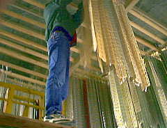 1998年2月21日(土) くもり 「ラーメンマニア」 私の記憶によれば、夕食は3日連続ラーメンライスだ。作りやすくて、好きだからしょうがない。 冷凍の具の付いた物など結構おいしい商品があるが、おいしく調理するのは意外と難しい。 麺を別にゆでたりあらゆる作業を並行してやっていると、熱いスープにのびてない麺をタイミングよく 組み合わせることができないのだ。具にもこだわるとなると、コンロが3つ必要になる。 納豆や卵、ねぎ、わかめなども食べて、栄養には一応気を使っているつもりだが。 今日はもちつき。まとまった注文があった。写真は先月の、かきもちをつるしているところ。 来週月曜日にはかきもちをおろす予定。