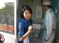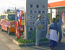 2000年10月5日(木)曇り 「ラジオカーの川瀬さん?!」 昨晩は、晩ご飯も食べずに寝てしまった。そういや先月は、電子レンジを開けたら、5日ぐらい前に忘れた、カビのはえたトンカツが見つかり大ショック。さらばトンカツ・・・昨日は県内で有名な人気ラジオ番組が取材に来た。生中継で色々な所を回るのがウリ。目の前のやりとりがラジオから聞こえてくるのは変な感じ。右の写真は、派手なラジオカーとお店と看板を一緒にいれようとしたらちょっと被写体がね。川瀬さんはコイン精米機備え付けのノートにも一筆残していってくれました! 昨日も今日ももみすり、どうにかすべて終了。