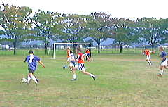 2000年10月15日(日)晴れ 「Nリーグチェアマンの一日」 まず宿直の方にあいさつに行き、申請せずにグランドで野球をしていた人達に移動してもらい、用具室でライン引きを探し、各チーム間の人数調整をして審判として笛まで吹き・・・ともう大変ね、とてもプレーに集中できやしない。なーんて言い訳、走れないものは走れないぞ!各チームとも人は不足気味で、ユニフォームの色の変更にも気を使うし、選手と事務局を兼ねるってのは楽じゃないね。我がチームは連戦連敗、最高でPK戦負け。これが盛り上がった!サドンデスで全員蹴った。私はらく〜に決めたよ。フットサルに慣れてしまうと、視野とか体の感覚が小さくなった感じがする。チェアマンとしては慣れたので、また選手として修練してがんばりたいな、広いグランド。 |