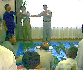 2001年8月22日(水)雨 日曜日は稲刈り、何があったんだったかもう忘れた。月曜日はNPK、火曜日は松任地球村のミーティング、それぞれ楽しい会話で盛り上がる。もう今は書いて伝えるより自分の参加優先、一緒に参加しませんか?と誘いたい。今夜も金沢地球村のミーティング、闊達なお母さんに「来て」と言われるとコロッと行ってしまう、単純。でも楽しかった、ちょうど台風で残業がなかったのも天命。地球村は、学生から年配の方まで、ありとあらゆる立場を越えて様々な人達が集まってるのが面白い。今度の土曜日は映画「AIを語る会」を地球村&星空喫茶で企画中。 |