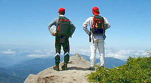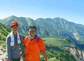 2001年10月7日(日)晴れ 「雲上人」 無事白山から帰還。写真はまだ。下のは7月のもの。やはり夏山の日帰りに比べて、秋で一泊というのは装備が重い。でも日帰りより時間的体力的には楽。フットサルに、ゴールキーパーぐらいならできるかな、とも思いつつ休憩室で寝ころんでたら神戸から田んぼやさんが遊びに来たので飲みに行く。私は烏龍3杯。 ![]() |