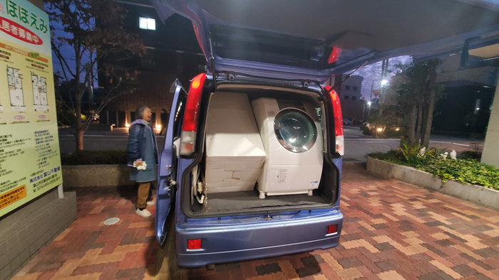 昨日、富山の実家へドラム式洗濯機やいろいろと取りに行きました。ところがこのドラム式洗濯機が死ぬほど重かった。最初、アンカーボルトで固定してあるのか?と思ったほど。それをなんとか引っ張り出して軽ワゴンに積むのが私と妻では、超困難。何度も心折れそうになりながらなんとか積んで秘密基地へ運んだがスーパーメカニックと下してもこれまた超重い。帰ってから重量を調べたらなんと82キロ!こりゃ思いはずだわ、、もう腰がモゲました(×_×)