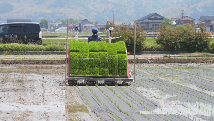 紙マルチ田植え穏やかな天気で順調にスタート・とくの&津幡とくの幼稚園の田植えダブルヘッダー・2025