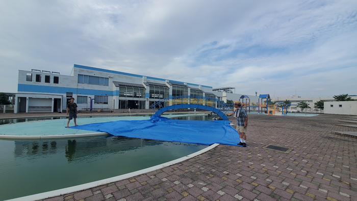 今日も石川県農業法人協会の会長就任あいさつ回り。前回は、行き当たりばったりで言って効率が悪かったので反省してグーグルマップに行先登録してスタート。当然、効率を考えて左回りが基本。おかげで多くの会員を回れた。そして午後は、虫送り祭り保存会の懸案事項の会場隣のプールに降り注ぐ灰の問題解決に養生用のブルーシートを掛けるテストをしました。昨年の反省会で私がメッシュをプールに浮かべる案を提案したら目出度く灰をなんとかする担当になってしまった。でもメッシュは、幅が2.5mしかなくてしかも高額。大きなプールを覆うのは、難しいと考えて軽量ブルーシートをテスト購入して浮かべてみました。結果は、流れるプールは、良好でしたが構造物が多いアスレチックプールは、かなり困難。ここは、水中掃除機でやってもらえないかなぁ~~。