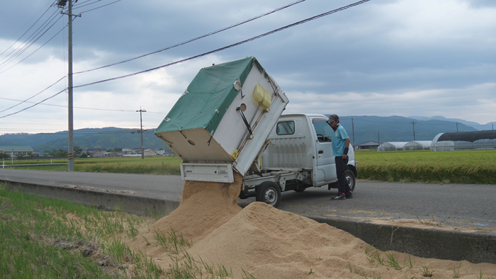 ひとめぼれ稲刈り予定が朝から雨雲レーダー真っ赤・籾殻を地域の方に無料で提供しています・2025