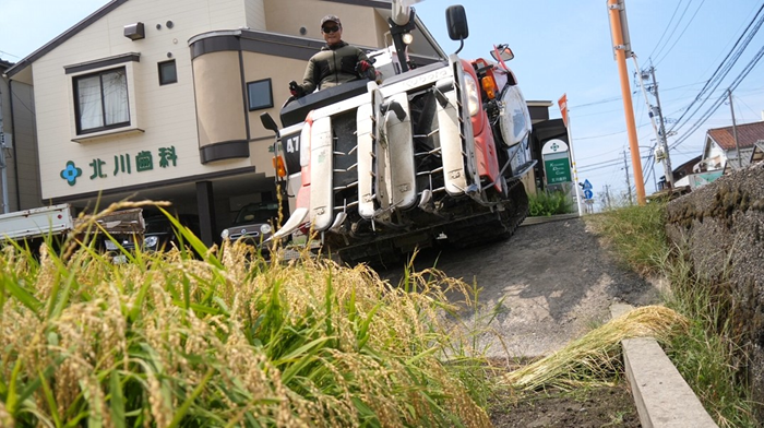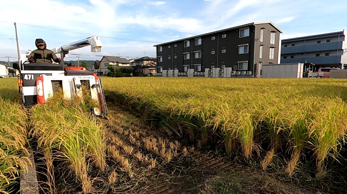 市街地のひとめぼれ稲刈りだが逆刈りのオンパレード・Y字刈りとS字刈りを駆使して無事進みました・2025