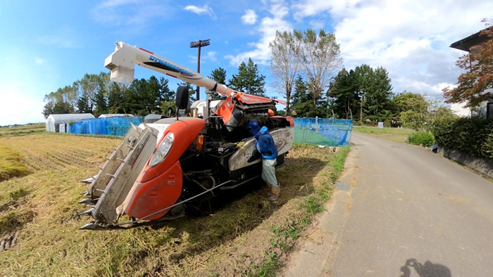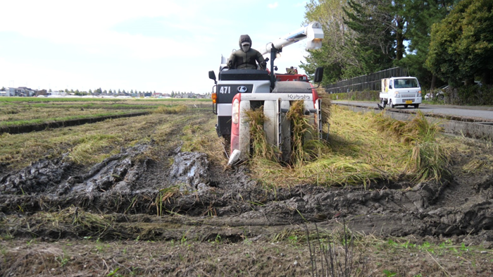 後半コシヒカリの稲刈り開始だが泥とイボクサの連続攻撃・ミルキー籾摺りで1台体制もありペース上がらず・2025