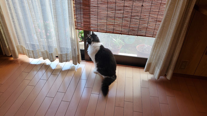 チョミゾウお外を眺めていたはずが、、d( ̄^ ̄)