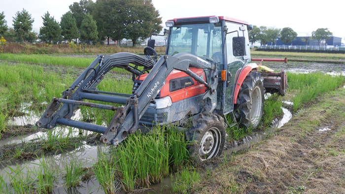 昨晩の激しい雨で水浸しの田んぼだが代掻き覚悟で秋起こしを強行。もはやお天気の回復を待っていたのでは、今年中に秋起こしが終わらない。とにかく代掻きでも稲株を鋤き込んでおけば超乾田地帯なので来年には、元通りに戻っています。でも秋起こしをせずに轍を残したままだとずっと水たまりが残るので来年の荒起こしで苦労することになる。それでもやはりKL41では、ちょっと厳しい田んぼに午前中突入してしまい午後は、硬かったにじのきらめきの田んぼに移動して秋起こしをしました、、o(^o^)o
