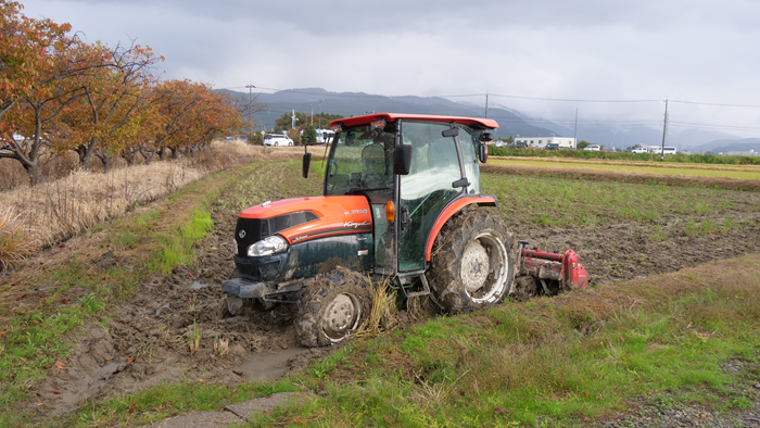 昨日からの激しい雨で田んぼは、、水浸しだけど秋起こしも残り少ないので突入です。KL3950は、餅つきで人員を確保出来ずにKL41とSL41の2台体制で開始。とりあえずKL41のノルマ達成ですぐにローダを装着しました。午後は、全農さんと来年の作付け計画を練りました。今年の反省からいろいろと作戦を練りました、、(o^-^o) そして打ち合わせ後に時間が空いたのでKL3950に乗り換えでKL3950のエリアを済ますことに。SL41も最後に残ったパラダイスエリアの秋起こしを済ましたのでこれで今年のトラクター作業は、全て完了です。これで餅加工と来年の作付け計画に集中出来ます。