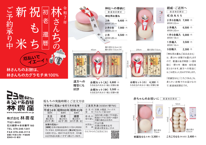 もちシーズンになりましたので初老、還暦など祝い餅をご予約を承り中です