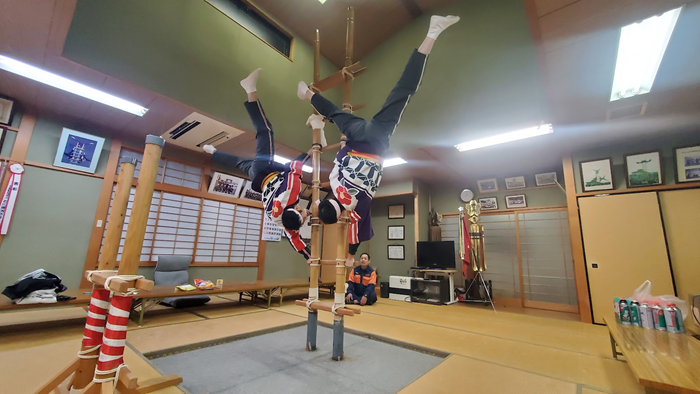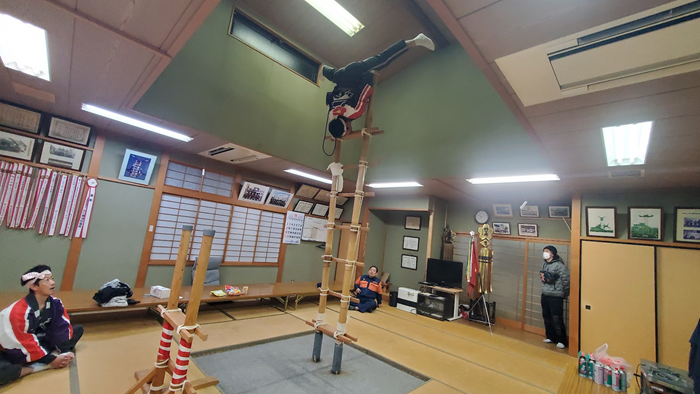 出初式に向けて二人ハシゴの練習を開始しました、、o(^o^)o