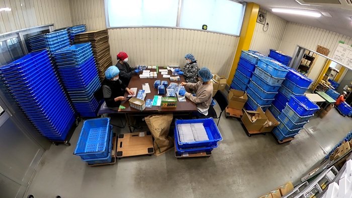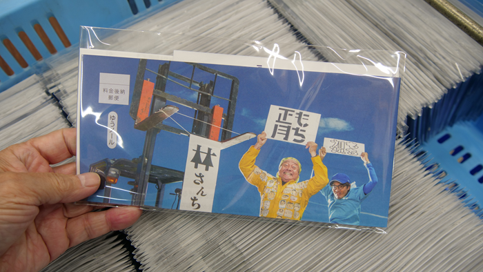 お正月餅に加え祝い餅と報恩講餅も並行しています・5千通近いDMの袋詰め開始です
