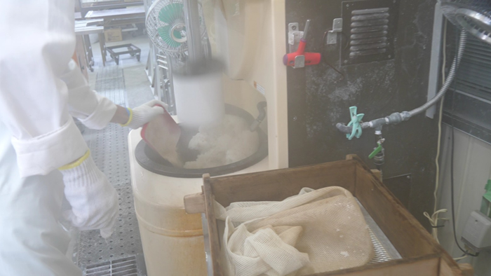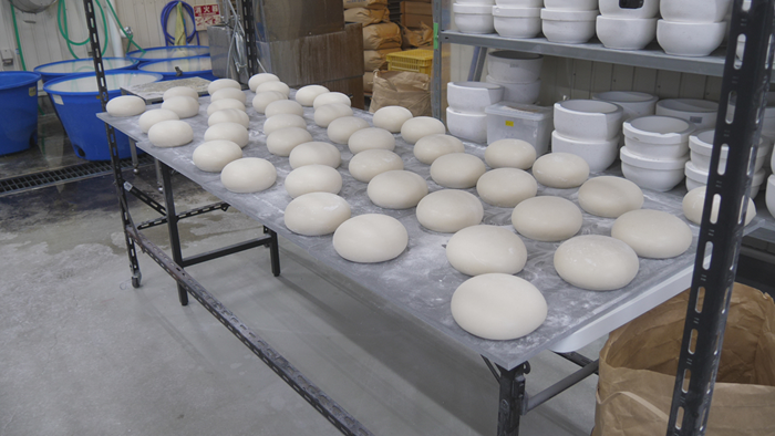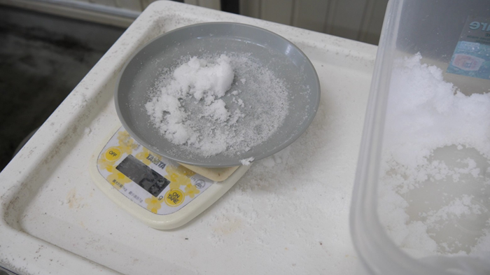 休日出勤で5合鏡餅を全開製造・カビ抑制の粉ワサビ+お塩+紅色着色料の投入で結構大変です・2025
