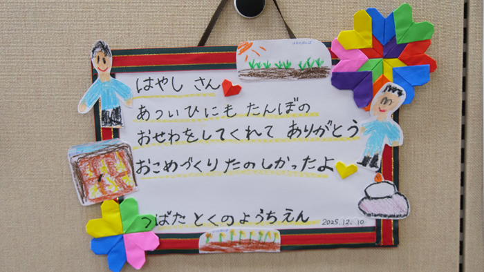 今日は、5合鏡餅製造でした。私は、インフルエンザで延期の津幡とくの幼稚園の餅つきに行きました。子供達と楽しい餅つきの後に感謝の手紙と給食を頂きました。そしてそのまま津幡とくの幼稚園で担当者と待ち合わせてクラファンの支援金を被災した石川県農業法人協会の会員に手渡すためにのと里山空港へ行きました。そこで支援金を手渡しました。少しでも復旧復興に役に立つことを祈っています。