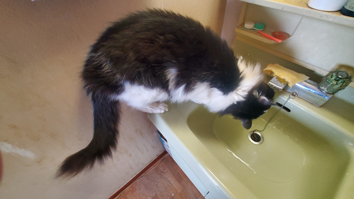 今日も洗面台で水を飲むチョミゾウ、、d( ̄^ ̄)
