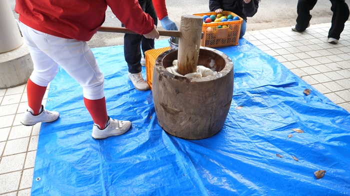 カキモチ搗き全開の土曜日です・石川中央ボーイズさんの餅つきお手伝いしました・2026