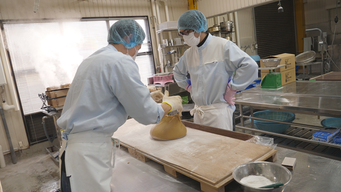明日は、左義長なのでその準備とようやく糀作りが始まるので自動発酵器が準備されました。例年なら自社の味噌作り用の糀作りをお正月から前倒しでガンガンやっていたが今年から味噌作りから撤退したのでノンビリムードです。そして土曜日は、カキモチ搗き全開の日です。でも型出しだけは、無いので少し楽かな、、(o^-^o) その間に今日は、石川中央ボーイズさんの餅つきのために餅米を蒸す作業が挟まれるのでなかなか大変です。自社のカキモチ用の蒸しの途中に別の餅米の蒸しを挟みながらの餅つきは、至難の業。でもそれもしっかりやってしまう社員さんの腕前には、感心しました。なんとかOEMの作業もこなしつつ今日もカキモチオーロラが少しづつ完成に向けて進んでいます。明日は、左義長と町内会総会があり総会後は、懇親会もあるので昼間っから酔っ払い確実です、、(* ̄▽ ̄*)