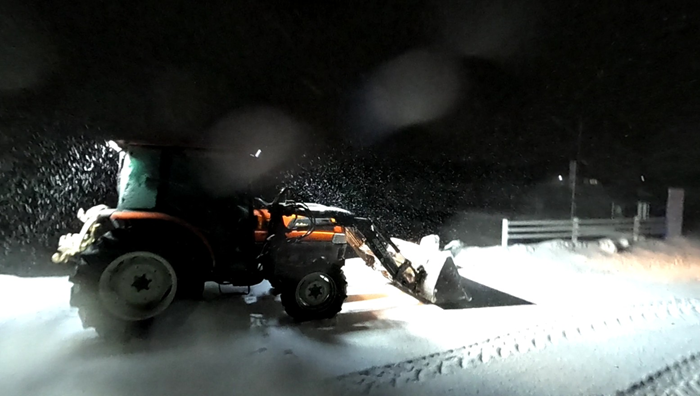 昨日サボった除雪を今日は、4時半起きで出動。ところが肝心の除雪トラクターのKL41のエンジンが掛からない。バッテリー?いやセルがまったく動かないのでどこかのセンサーの不具合。一番疑わしいのは、PTOの中立センサーだが他にもシャトルレバー中立、Uシフトの不具合等々もあるので全ての中立を確認してさらにPTOレバーもガチャガチャするが掛からない。でもかなり頑張ったらようやくエンジン始動で事なきを得た。この中立センサーの不具合は、なかなか手強くてたまにこうなる。除雪中の道路でエンジン停止じゃシャレにならないので困ったもんです。でも後は、順調に除雪ルーティンをこなして行きました。ただ消防団格納庫の除雪中に落雷があって辺りが真昼のようになってビックリした、、(◎_◎) 今日は、土曜日なのでカキモチ作りも全開です。そんな中、先日ネット通販で販売開始した黒糖(ホンモノ)とぼ切餅のネット通販が好調です。来週には、また増産しますので皆さんぜひお買い求めください。そしてこの寒い時期にスーパーメカニック自宅のファンヒーターが不調。そこでさすがスーパーメカニック。自分でノズルの詰まりを直すために分解していました。私も何度かファンヒーターの不具合でやったことありますがなかなか大変な作業です。でも聞くとそんな分解修理しなくてもネットで燃焼部分が売っているとのこと。皆さんは、そちらをご利用するといいかもです、、(o^-^o)
