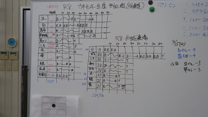 今日は、午前中にふじひら保育園の子供達がカキモチオーロラの見学に来ました。みんな初めて観る光景に興味津々。そこでなぞなぞ「何枚あるでしょうか?」、、「100枚!」「1億枚!」。正解は、9万枚でした、、\(^o^)/  午前中の雨で田んぼも水浸しでしたが構わずあぜクリーン作業。まったく問題なく出来るのは、超乾田地帯だからですね。その後は、認定農業者と農業委員との意見交換会。昨晩は、野々市市稲作受託組合の総会と相変わらずの会合の嵐です、、(◎_◎)