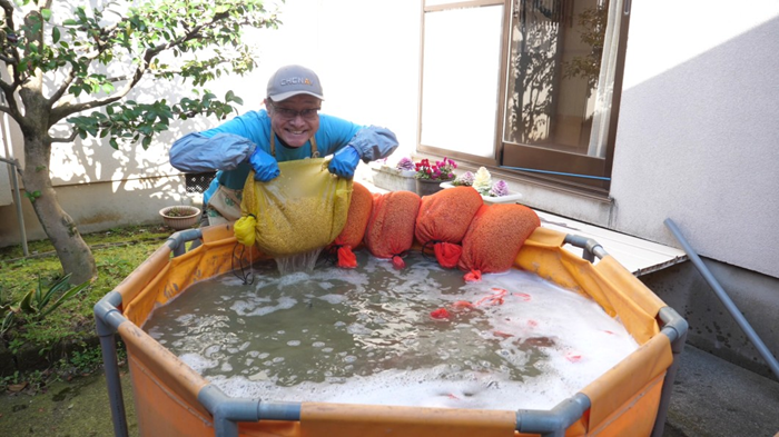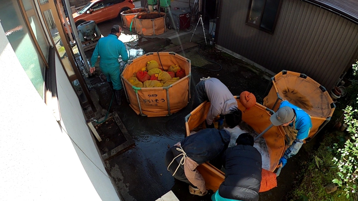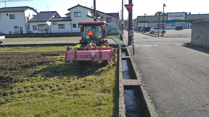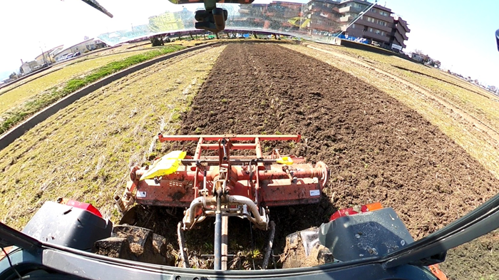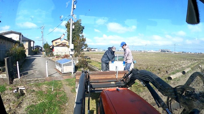今日から種籾シャブシャブが始まります。これは、種籾の発芽率アップのために発芽阻害物質アブシジン酸を洗い流す作業です。これぐらいで洗い流せないという説もありますが結果的に発芽率が劇的にアップしたので続けています。そして今日は、先に排水桝の運搬をしてから好天に恵まれたので荒起こし3台体制で行いました。