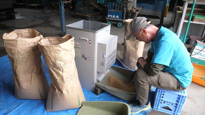 今日は、3回目苗出しだが990箱と少ないので音速で済まして荒起こしにブロキャスによる肥料散布と手分けして作業。さらに宇宙米の脱芒もしたりとテンコ盛りです。特に荒起こしは、雨で遅れていたが来週早々に代掻きしたいので頑張りました。おかげでなんとか完了出来てSL41にウイングハローを装着して代掻きテストも出来ました。本当になんとか予定に間に合って良かった、、\(^o^)/