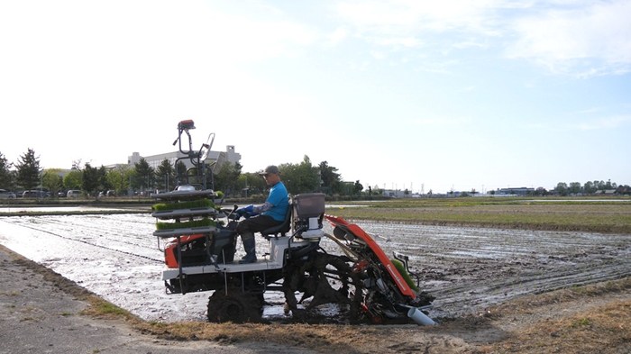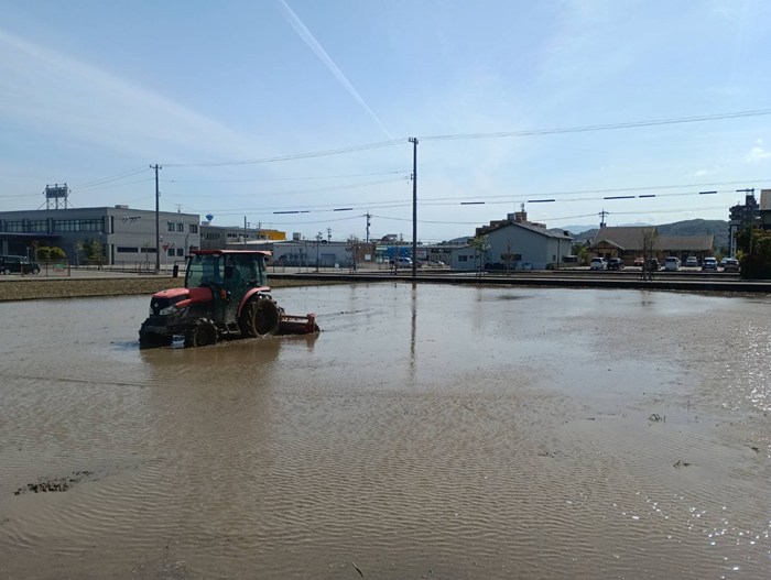 今日は、新潟県燕市からコーダ工業さんが「おわちのポッケ」を持って来て頂きました。なんと一旦製造を止めたが私の動画のおかげ?じゃないと思うが農家さんからの要望もあり製造再開するとのこと。その前に一度、私に動画のお礼にとなんと前回製造して会社に展示してあった最後の「おわちのポッケ」を贈呈してくれました。でもやはりこの高いクオリティーは、ステンレス製のスプーンやフォークで有名な新潟県燕市のメーカーならでは、と感じました。そしてさっそくこの「おわちのポッケ」を田植えに装着して今日は、明日からの田植えに備え田植え機テストをしました。途中、植付オートを入れ忘れていて空走りをした意外は、苗取り量もドンピシャで明日からの全開田植えに備えることが出来ました。代掻きは、今日からSL41もウイングハローからドライブハローに変えてKL3950と2台体制でひとめぼれの超市街地へ突入です。