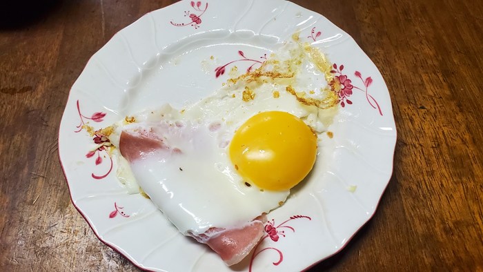 山ん中たまごの目玉焼き、、黄身がパステルカラー(⌒‐⌒)