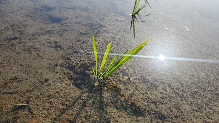 昨晩は、明日からの田植え全開に備えていつもの「ななや」で新作「せり辛もつ鍋」で英気を養いました。そして朝は、土曜日に植えたハナエチゼンの田んぼの水回り。朝日に輝いて美しい、、\(^o^)/