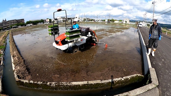 今日は、朝からあいにくの雨。でも田植えは、しなければならないので雨合羽を着て出動。でも雨で落水が間に合わず水が多い田んぼでの田植えを余儀なくされた。かなりゆっくりと植えたがマーカー線は、見えないし浮苗が出るしで大苦戦。その後は、今年は、雨で田んぼに籾殻撒けずに籾殻置き場に溜まってしまった田んぼの田植え。例年ならカルス菌で分解してしまうがさすがに今年は、たくさん残ってしまった。その籾殻だらけの田植えは、なるべく苗が籾殻に浮かないよう慎重に刺すようにして植えたがそれでも結構ヤバイかも。ちゃんと活着しますよ~に。ただしこんな籾殻だらけの田んぼでカルス菌で分解して肥料分が多くて倒伏したら稲刈りで抜けてしまうので無施肥で植えました。そして最後は、大豆跡の田んぼの田植え。ここも忘れずに施肥は、半分にしないと倒伏して大変なことになります。そんな感じの1日だったのでまったくペースが上がりませんでした。まあそれでも計画通りに進んでいるので良しとします、、(o^-^o)