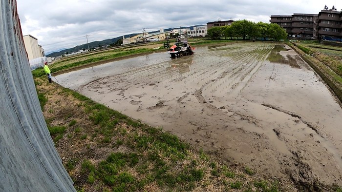 今日でハナエチゼン田植えの残りが2ha。かなり厳しい面積だが田んぼもまとまっているので頑張ればワンチャン植え切れるのでは?と思い朝から全開田植え。休憩時間も昼食時間を削って頑張ってあと1枚で遠方エリアに移動というところまで辿り着いた。ところが残り外周1周で肥料切れ。その時は、スタッフも休憩に戻っていたので万事休す。それでも肥料を補充して終わらせて次のエリアに移動と思い帰社したら。息子から今から行っても中途半端に終わる。すると水管理も難しいのでここで田植えを中断との提案。確かにそうなので結局第3Qで田植えを中止しました。まあ無理せずに明日は、ゆっくりとハナエチゼン田植えを終わらせてひとめぼれ田植えに移行します、、(o^-^o)