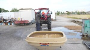 今日は、祝い餅の第1弾がありました。これからたくさん売れますように。そして今日は、大豆コンバインとブロキャスを秘密基地に収めました。そして秋起こしにブロキャスを外したKL3950が復帰。青立ち大豆の鋤き込みをするSL41と2台体制で秋起こしを急ぎます。