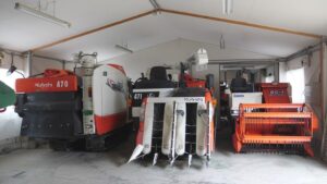 大豆コンバインDC-1を秘密基地に格納しました・秋起こしも残すは青立ち大豆とミルキー跡のみ・2023