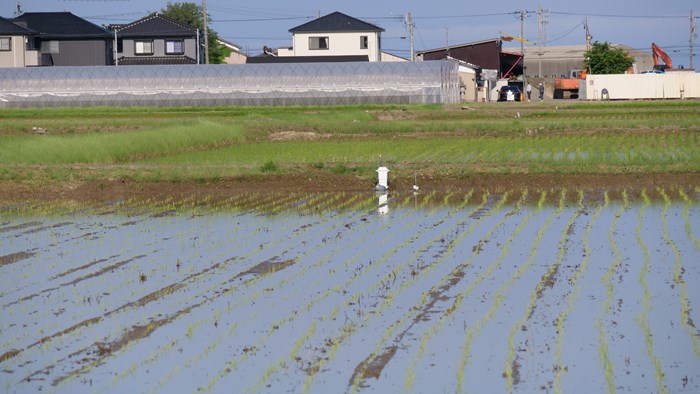 昨日、夢太くんが市街地の水回り困難エリアにアクアポートをフル装備してくれました。ここは、設置もかなり困難な入水パイプだったので苦労が伺える設置でちょっと感動。でもこれで交通渋滞の中、水回りに行かずに済みます。そしてもう一つが自然栽培「林さんちの宇宙米」の田んぼに設置してあって田植え後にアイガモロボットを泳がすために稼働してあったがここは、用水が細くてなかなか水位が上がらず朝イチのアイガモロボットのリリースは、断念。そして今日は、藤蔭幼稚園の田植えがありました。珍しく?快晴の田植え日和で楽しく出来ました。でも藤蔭の田植えの後にも昼食後も宇宙田に観に行くが水位が上がらず無理に稼働させてみたが速攻で座礁してしまった。その間もミルキークイーンの田植えに向けて代掻きがラストスパート。でもその田植えもレール交換中のNW5が部品不足で動かない。今度の土曜日にミルキークイーンの田植えをしたいのだが果たして間に合うのか?最後に宇宙田にアイガモロボットを浮かべに行きました。稼働時間が6時~16時なので動かないのだがさすがに畦に置きっぱなしは、マズイでしょう、、d( ̄^ ̄)