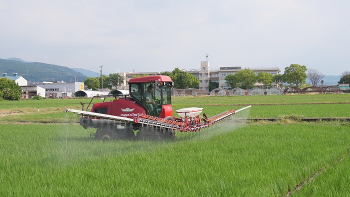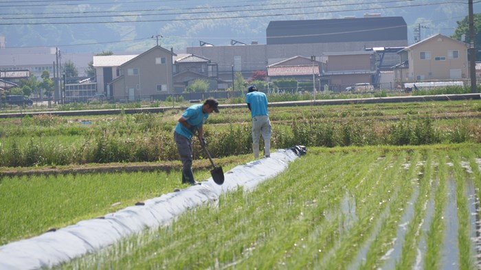 昨日、私が不在でもハウス片付けが済むという快挙の日でした。昔は、本当に14棟のハウスを全部外して折りたたむのは、下手すると二日かかりでした。ハウス片付けが済むとあとは、ひたすら草との戦いです。女性陣は、草取りへ。男性陣は、紙マルチ田の畦マルチ張り。私は、自然栽培「林さんちの宇宙米」の田んぼのFarmoの登録とアイガモロボットが座礁しないようにアクアポートの水位調整しました。そこへスーパーメカニックがお隣さんで凄い機械が動いてると言うので行って見ると。巨大な管理機が田んぼの中を動いていました。本当にアイガモロボットの対極にいる草との戦いのマシンですね、、(◎_◎)