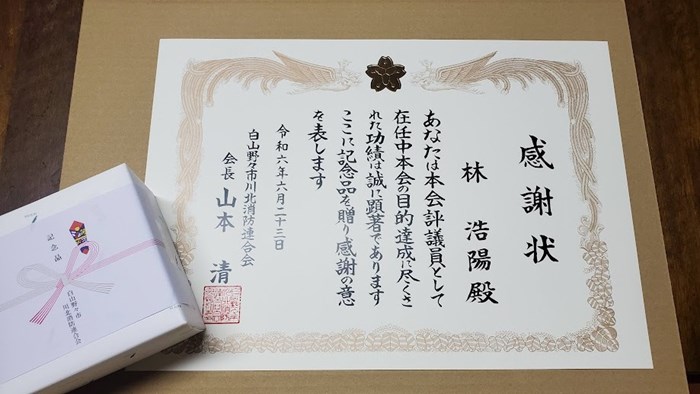 分団長引退で白山野々市川北消防訓練大会で授与予定だった感謝状を今日頂きました。銀杯も頂きました、、\(^o^)/